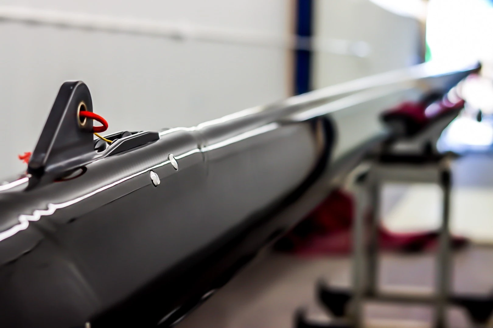 The mast underwent structural reinforcement to address delamination issues while preserving its lightweight racing characteristics.